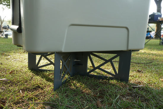クーラーボックスやコンテナを地面に直置きせずに設置できるスタンドです。